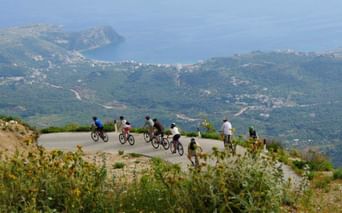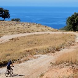 Herefter venter en skøn strækning med udsigt over det glitrende Ioniske Hav. I cykler gennem olivenlunde, citrusplantager og små landsbyer, inden I når Porto Palermo, hvor I kan spise frokost og besøge Ali Pashas historiske borg.