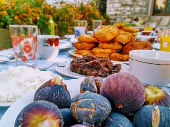 Gården er kendt for sin fantastiske mad, hvor meget af det, der serveres, kommer direkte fra markerne og den lille ørredfarm på stedet. Frisk, lokalt og helt nede på jorden – præcis som Albanien selv.