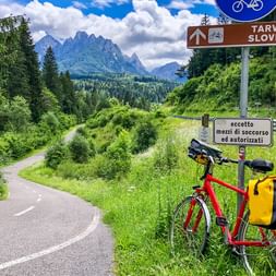 Cykelferien begynder i hjertet af Slovenien, nord for Triglav Nationalpark. Herfra starter eventyret ved den idylliske Bled-sø, hvor I følger Sava-floden langs foden af de majestætiske Julianske Alper og videre gennem den hyggelige bjergby Kranjska Gora – inden turen krydser grænsen til Italien. På den berømte Alpe-Adria-cykelrute cykler I ad gamle jernbanestrækninger, gennem tunneller og over stålsvingsbroer med enestående udsigt over Canal-dalen.