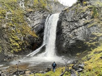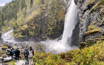 Efter en solid morgenmad kører I en kort tur til parkeringen ved Veslefjellvegen, hvor dagens vandretur starter. Ruten går gennem det åbne højfjeld til det smukke vandfald Myfallet, og videre til toppen af Veslefjell. Udsigten heroppe er vidstrakt og stemningen stille – præcis som et norsk fjeld skal være.