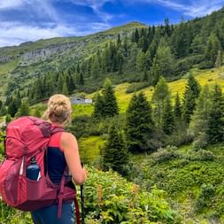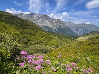 Med bus og svævebane går turen op til Serlesbahn-stationen i Stubai-dalen. Med Stubaier Alpernes dramatiske tinder som bagtæppe vandrer I til valfartskirken Maria Waldrast og besøger klosteret, inden den alpine opstigning til Blaserhütte – kendt som “blomstermountain”. Herfra går stierne gennem enge og skove ned til den rustikke og naturskønne Gschnitztal.