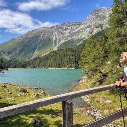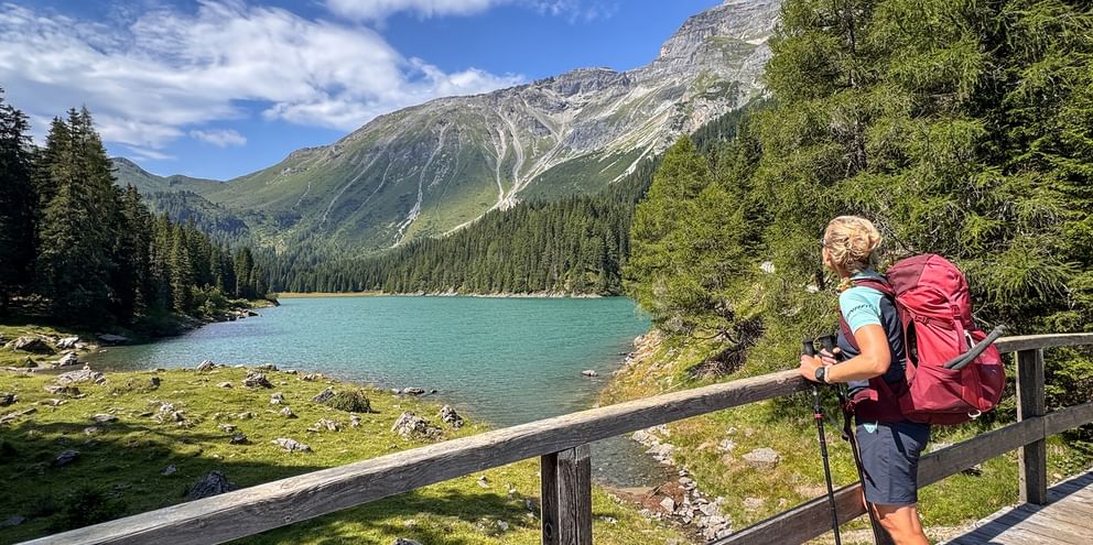 Fra den turkisblå Obernberg-sø følger I stien langs bredden forbi det berømte Maria am See-kapel – et særligt sted fyldt med spiritualitet. Turen fortsætter gennem blomstrende alpine enge og op til Sandjöchl (2.000 m), hvor I krydser alperyggen og grænsen til Italien. På den sydlige side snor bløde serpentiner sig gennem bjergskove ned til den maleriske Fleres-dal med vidunderlige udsigter til de italienske Alper.