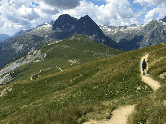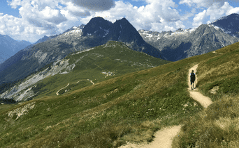 After a hearty breakfast, you take a local bus to cross Val Fouly. You then continue your hike up through green pastures to Grand Col Ferret (2,537 m). A detour to Tête Ferret is possible at this point. You will cross not only Grand Col Ferret but also the border between Switzerland and Italy. The trail then descends to the Italian Val Ferret at the foot of Mont Blanc, offering a new perspective of the mountain. The day ends with a short bus ride to Courmayeur.