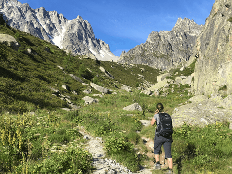You start the day with a short bus ride to the village of Le Tour (10 minutes, free with the “carte d’hôte,” which you need to request at the hotel). You can choose to hike up via Chalets de Charamillon or take the balcony trail over Posettes to Col de Balme (2200 m) on the border between France and Switzerland. From here, you can enjoy the magnificent views of the surrounding glaciers: Argentière, Le Tour, and the north face of the Mont Blanc massif. Afterwards, the trail descends through lush alpine meadows to the village of Trient (Switzerland).