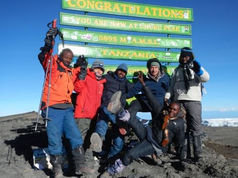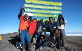 Fra toppen åpenbarer Kilimanjaro seg i all sin prakt, med isbreer og isfelt på nært hold og det endeløse landskapet langt under dere, badet i solens første stråler. Øyeblikket er stort – og selvfølgelig skal de obligatoriske bildene ved skiltet forevige denne gyldne stund i det vakre morgenlyset.